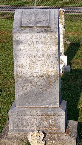 John Jacob Burkle, husband of Christina Kern Burkle, Galemore Cemetery, Allen County, Kansas. Thanks for permission from Find A Grave contributor TiogaRose to use this photo. Click on photo to enlarge it. |