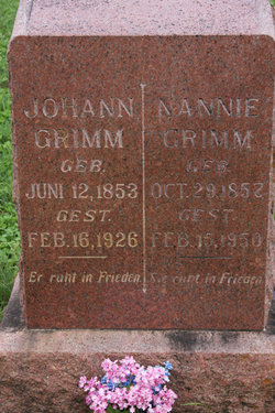 Nannie Rudeloff (daughter of Friedrich Rudeloff) and Johann Grimm, Riverside Cemetery, Seguin, Texas. Thanks for permission from Find A Grave contributor Andy Baker ©2010 to use this photo. Click on photo to enlarge it. |
