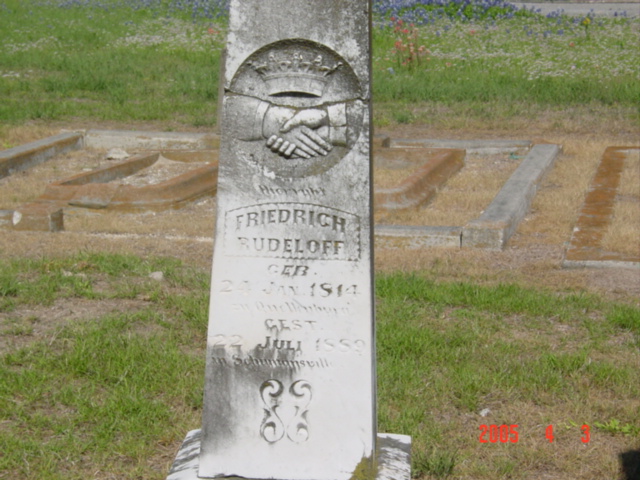 Friedrich Rudeloff, Schumannsville Cemetery, Schumannsville, Texas. Thanks for permission from Find A Grave contributor liz & lee to use this photo. Click on photo to enlarge it. |