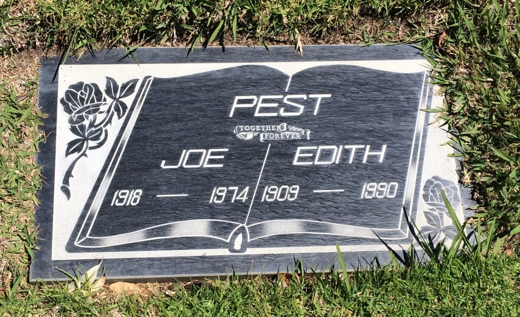 Edith Alta Humphrey, daughter of Charles Hiram Humphrey, and Joseph Paul Pest, Green Hills Memorial Park, Rancho Palos Verdes, Los Angeles, California. Click on photo for larger version. |