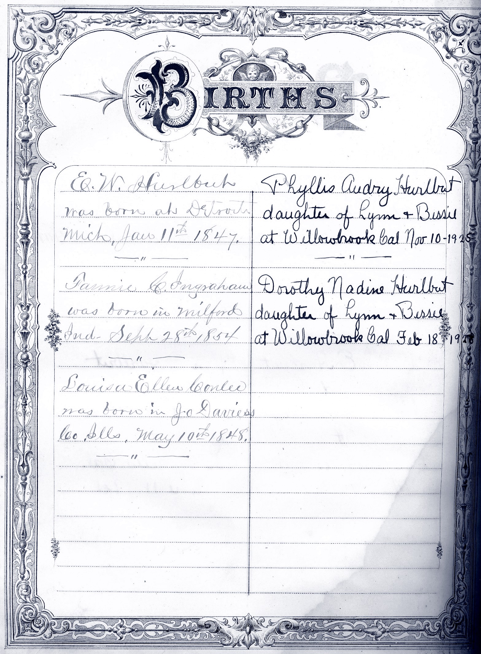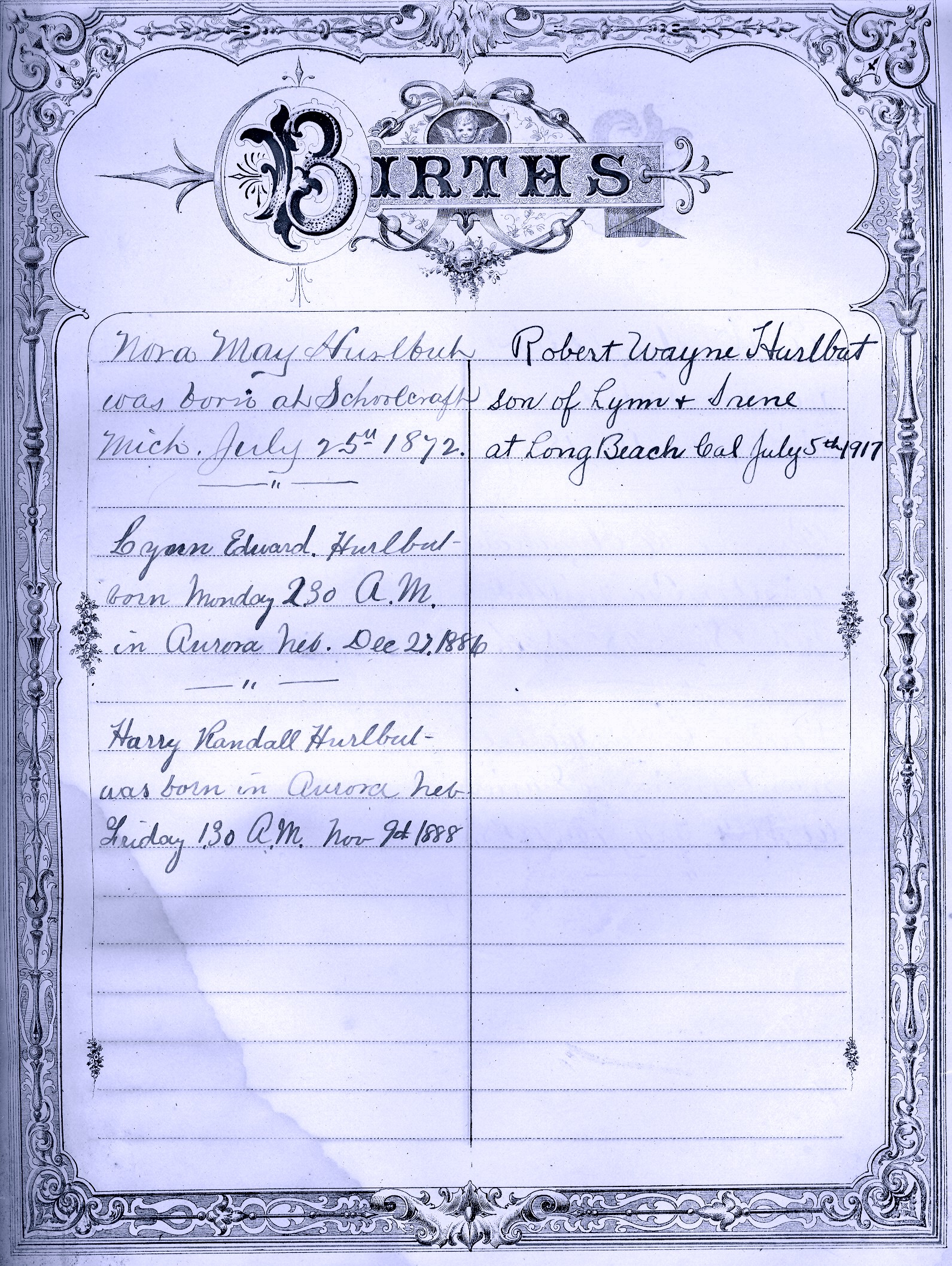 I am adding information from Hurlbut family bible records as I have it available. This is a beginning. If you have information about any of these family records, please let me know.